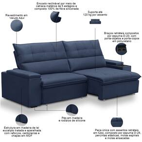 Este modelo retrátil reclinável foi pensado para quem valoriza cada momento de descanso, combinando tecnologia e conforto em um design que transforma qualquer ambiente. A estrutura em madeira e rodízios de silicone garante estabilidade e movimento suave, enquanto o encosto reclinável com catraca de 5 estágios permite encontrar a posição ideal para relaxar. A fibra siliconada oferece suporte ergonômico, e o tecido premium convida ao toque, tornando cada momento mais especial. O diferencial desse sofá 3 lugares está nos braços retráteis com porta-copos e porta-objetos, oferecendo praticidade sua rotina sem perder o estilo.