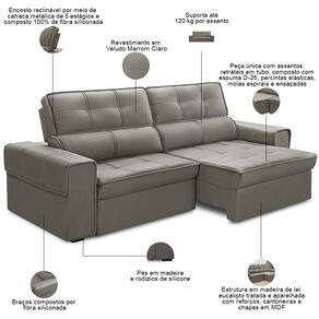 Descubra o Sofá Retrátil Reclinável Samir 250cm: onde robustez encontra elegância!