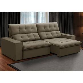 Unidades por kit: 1 | Material de enchimento do encosto: Fibra Siliconada | Linha: Sala de Estar | Formato do sofá: Linear | Estilo: Moderno | Desenho do tecido: Liso | Fabricante: Lyam Decor | Densidade da espuma do assento: D-26 | Largura: 250 cm | Cor dos pés: Marrom | Profundidade: 98 cm | Quantidade de Caixas de embalagem: 1 | Requer montagem: Não | Cor: Amêndoa | Peso: 80 Kg | Material do estofamento: Veludo | Peso máximo suportado: 240 kg | Orientação do Sofá: Frontal | Mecanismo de abertura do produto: Manual, rodízios de silicone | Altura: 110 cm | Tipo de produto: Sofá Retrátil Reclinável