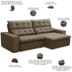 Na correria do dia a dia, seu cantinho de descanso merece um sofá que entende suas necessidades. O Sofá Retrátil Reclinável Vincent 250cm chega para se transformar no seu melhor aliado do relaxamento.