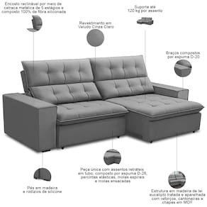 Com estrutura em madeira de eucalipto e assento reforçado por molas ensacadas, esse sofá 3 lugares oferece durabilidade sem abrir mão do conforto. O seu mecanismo retrátil e reclinável suave, com espuma D26 do assento e o encosto em fibra siliconada, criam a combinação perfeita de apoio e maciez, enquanto o tecido premium se adapta a qualquer estilo de decoração. Seja para receber amigos, assistir filmes ou simplesmente descansar, o Vincent se ajusta ao seu momento. Mais que um móvel, uma experiência de bem-estar que vai transformar sua sala no lugar favorito da casa.