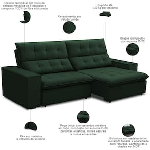Com estrutura em madeira de eucalipto e assento reforçado por molas ensacadas, esse sofá 3 lugares oferece durabilidade sem abrir mão do conforto. O seu mecanismo retrátil e reclinável suave, com espuma D26 do assento e o encosto em fibra siliconada, criam a combinação perfeita de apoio e maciez, enquanto o tecido premium se adapta a qualquer estilo de decoração. Seja para receber amigos, assistir filmes ou simplesmente descansar, o Vincent se ajusta ao seu momento. Mais que um móvel, uma experiência de bem-estar que vai transformar sua sala no lugar favorito da casa.