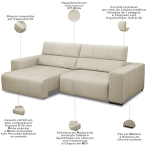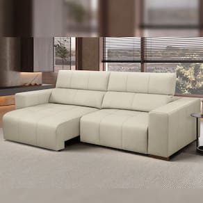 Descubra o conforto e a elegância do Sofá Retrátil Reclinável Para Sala 4 Lugares 290cm Bari L06 Couro Off White, da Lyam Decor.