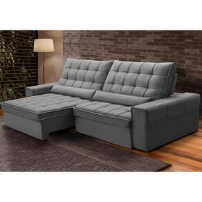 Sofá Retrátil Reclinável Para Sala 4 Lugares 290cm Nebrasca F04 Veludo Cinza Claro - Lyam Decor