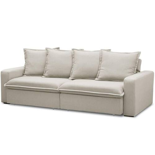 Encosto reclinável por meio de catraca metálica com 5 estágios e almofadas soltas 100% em fibra siliconada.