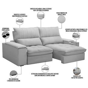 Procurando por um estofado confortável e versátil para a sua sala de estar? Conheça o Sofá 3 Lugares Retrátil Sala de Estar Living 250cm Nápoles, da Lyam Decor. Com ele, você terá o máximo de conforto e estilo em uma única peça. Com design elegante e moderno, esse Sofá Retrátil harmoniza perfeitamente com qualquer estilo de decoração, ao passo que garante uma experiência inigualável de conforto e bem-estar, graças à tapeçaria com espuma de alta densidade e revestimento em veludo que garante um toque suave e agradável. Para completar, a versatilidade fica por conta das braças om porta-copos para deixar a noite de cinema muito mais prática. Enfim, seja relaxar após um longo dia ou para curtir um cinema em casa, esse sofá retrátil e reclinável é a escolha certa. Então, não perca mais tempo e adquira agora mesmo o seu!