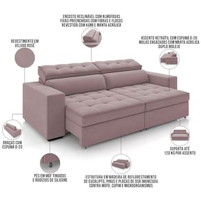 Dono de um visual que promete levar sofisticação e aconchego para a sua casa, o Sofá Retrátil Reclinável Para Sala de Estar Living 218cm Clara, da Lyam Decor, vai transformar os seus dias de descanso, além de elevar a decoração da sala de estar. Por dentro, esse sofá conta com estrutura em madeira de reflorestamento de eucalipto, responsável pela grande durabilidade e resistência, enquanto as percintas elásticas, as molas espirais e ensacadas e a tapeçaria em espuma D-26 garantem o conforto e maciez inigualáveis. Já a versatilidade fica por conta do assento retrátil e do encosto reclinável, o que permitem adequar a posição o sofá de acordo com sua necessidade, seja fechado para receber os amigos, ou aberto e reclinado para curtir aquele filme em família. E aí, bom demais, não é mesmo? Então, aproveite e garanta já o seu!