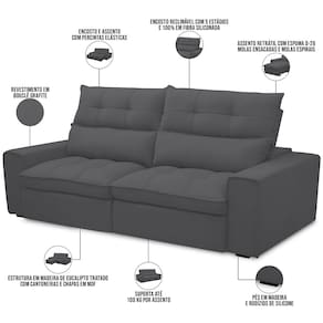 Adicione estilo e conforto à sua casa com o Sofá 3 Lugares Retrátil Dimas, da Lyam Decor.