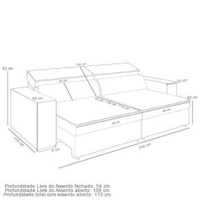 Profundidade total com assento aberto: 175 cm