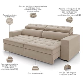 Dono de um visual que promete levar sofisticação e aconchego para a sua casa, o Sofá Retrátil Reclinável Para Sala de Estar Living 246cm Clara, da Lyam Decor, vai transformar os seus dias de descanso, além de elevar a decoração da sala de estar. Por dentro, esse sofá conta com estrutura em madeira de reflorestamento de eucalipto, responsável pela grande durabilidade e resistência, enquanto as percintas elásticas, as molas espirais e ensacadas e a tapeçaria em espuma D-26 garantem o conforto e maciez inigualáveis. Já a versatilidade fica por conta do assento retrátil e do encosto reclinável, o que permitem adequar a posição o sofá de acordo com sua necessidade, seja fechado para receber os amigos, ou aberto e reclinado para curtir aquele filme em família. E aí, bom demais, não é mesmo? Então, aproveite e garanta já o seu!
