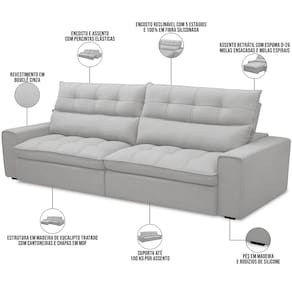 Adicione estilo e conforto à sua casa com o Sofá 3 Lugares Retrátil Dimas, da Lyam Decor.