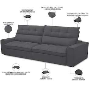 Adicione estilo e conforto à sua casa com o Sofá 3 Lugares Retrátil Dimas, da Lyam Decor.