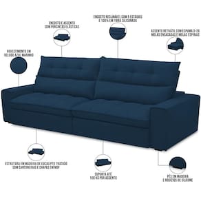 SupplierSimpleName: Sofá Retrátil Reclinável Para Sala de Estar Living 290cm Dimas F04 Veludo Azul - Lyam Decor