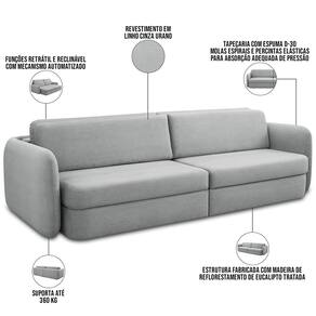 O design inovador e minimalista tornará esse sofá retrátil o ícone de beleza e bem-estar da sua sala de estar e living. Tapeçado com espuma de alta densidade e reforçado com molas espirais e percintas elásticas, esse sofá 3 lugares é sinônimo de aconchego, principalmente durante os momentos com a família e amigos. Além disso, harmoniza facilmente com diversos estilos de decoração, o que o faz ainda mais versátil e indispensável. Não perca tempo e adquira agora mesmo o seu Sofá Jacob e desfrute do verdadeiro descanso e comodidade.