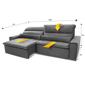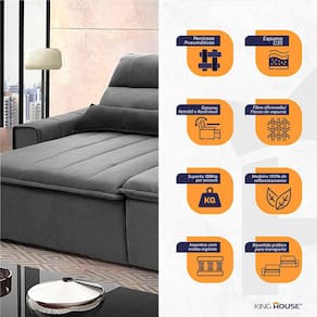 Ele possui encosto reclinável em cinco posições, proporcionando-lhe mais conforto na hora do descanso. Não para por aí: seu assento retrátil conta com espuma D35 e molas espirais, transformando seu sofá em uma verdadeira cama para assistir seu filme preferido.