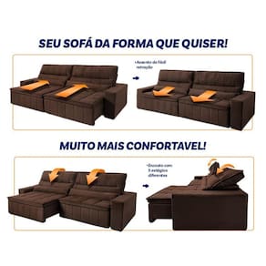 Ele possui encosto reclinável em cinco posições, proporcionando-lhe mais conforto na hora do descanso. Não para por aí: seu assento retrátil conta com espuma D33 e molas espirais, transformando seu sofá em uma verdadeira cama para assistir seu filme preferido.