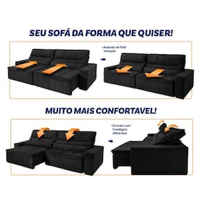 Ele possui encosto reclinável em cinco posições, proporcionando-lhe mais conforto na hora do descanso. Não para por aí: seu assento retrátil conta com espuma D33 e molas espirais, transformando seu sofá em uma verdadeira cama para assistir seu filme preferido.