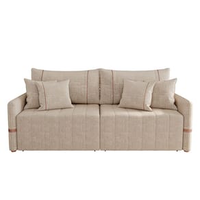 MEDIDAS: A = 98 cm L = 220 cm P = 140 cm (Aberto) / 102 cm (Fechado) PESO SUPORTADO POR ASSENTO: 130 kg PESO: 80 kg MODELO: Sofá Retrátil S/ Caixa 3 Lugares 2,20m C/ Almofadas Linho My Life MARCA: Bex's Estofados COR: Bege MATERIAL DA ESTRUTURA: MDF DENSIDADE DA ESPUMA: HR26 e Plumante MATERIAL DO ASSENTO: Espuma QUANTIDADES DE LUGARES: 3 MATERIAL DO ENCOSTO: Fibra de silicone TECIDO DO SOFÁ: Linho POSSUI ENCOSTO REMOVÍVEL: Sim MATERIAL DO BRAÇO: Espuma ACOMPANHA ALMOFADA: Sim, 4 Almofadas MATERIAL DOS PÉS: Madeira QUANTIDADES DE PÉS: 4 RODÍZIOS: 4 DIFERENCIAL: Sofá cama retrátil sem caixa funcionalidade com praticidade, Detalhes nas laterais, e botões de madeira. GARANTIA: 6 meses