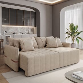 O Sofá My Life Sem Caixa foi criado para transformar o seu ambiente em um espaço mais acolhedor e elegante. Com design moderno e linhas que abraçam, ele une praticidade e charme na medida certa. Ideal para quem valoriza bem-estar sem abrir mão da sofisticação. Produzido com materiais de alta qualidade, sua estrutura é resistente e feita para durar, estofado macio seja para maratonar sua série preferida, curtir bons momentos com visitas ou recarregar as energias depois de um dia cheio. E o melhor: ele se transforma facilmente em cama, oferecendo ainda mais funcionalidade para o seu espaço. Com almofadas decorativas e detalhes nas laterais o Sofá My Life traz um toque de elegância à sua sala de estar, combinando perfeitamente com qualquer estilo de decoração.