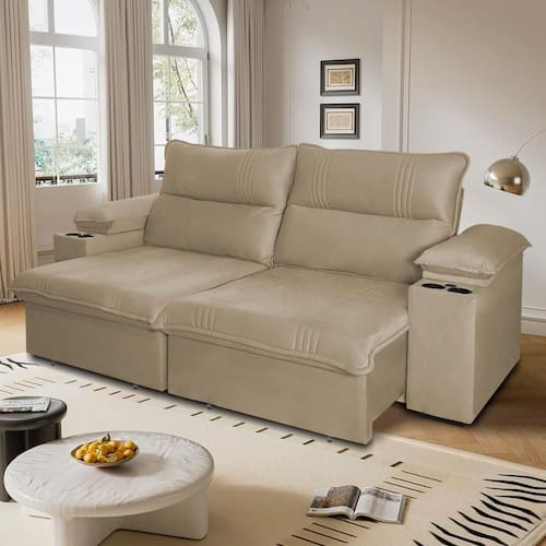 O sofá Teslaoferece encosto reclinável com cinco posições, permitindo ajustar o conforto ideal para relaxar. Seu assento retrátil é feito com espuma D28 e possui suporte com percintas elásticas e molas bonel, proporcionando um nível de conforto semelhante ao de uma cama - perfeito para maratonar suas séries ou assistir a um bom filme. Além disso, o sofáTeslatraz conveniência com porta-copos e carregador USB embutidos sob a Almofada dos braços retráteis, para que você possa manter suas bebidas e dispositivos ao alcance enquanto relaxa. As almofadas nos braços são preenchidas com fibra siliconada, garantindo maciez extra para momentos de descanso completo.