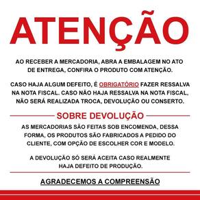 Para manter o produto sempre bonito, recomenda-se a limpeza com pano levemente umedecido, sem uso de produtos abrasivos.