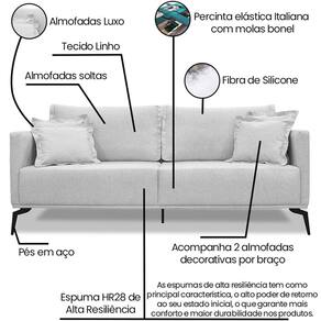 O Sofá Liv foi desenvolvido para quem procura uma peça que une conforto e estilo. Com 180cm de largura e revestimento em linho de alta qualidade, proporciona um toque sofisticado e aconchegante, ideal para qualquer ambiente. Os pés em aço carbono garantem resistência e um design moderno, enquanto o encosto conta com almofadas soltas em fibra de silicone, oferecendo um suporte macio. O assento fixo possui percintas elásticas italianas e molas bonel, combinado com espuma HR28 e plumante em silicone, que garantem qualidade e conforto. Acompanha também duas almofadas decorativas, que adicionam um charme extra e permitem personalizar ainda mais o seu produto. Perfeito para diversos ambientes, o Sofá Liv é a escolha ideal para quem busca aliar conforto e beleza no dia a dia. Este móvel chegará em sua casa separado em 01 volume.