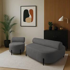 Transforme seu ambiente com o Kit Sofá Ilha e 1 Poltrona Éden em Bouclê Grafite, uma peça de design orgânico que une estética moderna, conforto superior e presença decorativa marcante. Seu formato arredondado com encosto cilíndrico (rolinho) adiciona delicadeza ao visual da peça. Produzido com estrutura em madeira de eucalipto e MDF, o conjunto orgânico oferece resistência e longa durabilidade. O assento em espuma D-33 proporciona sustentação e maciez ideais para uso diário, enquanto o encosto rolo em espuma D-26 com fibra 100% garante apoio confortável e ergonômico. Outro grande diferencial tanto da poltrona quanto o sofá curvo é o estilo leve e fluido, perfeito para locais que pedem sofisticação, como salas de estar, lofts, áreas de convivência e até projetos corporativos que necessitam de um sofá para recepção ou sofá lounge. Os pés laterais em aço preto reforçam a robustez estrutural e adicionam um toque natural à peça. O kit Éden transforma qualquer espaço em um ambiente acolhedor.