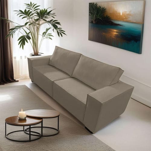 - O sofá chegará montado para você, bastando rosquear os pés.