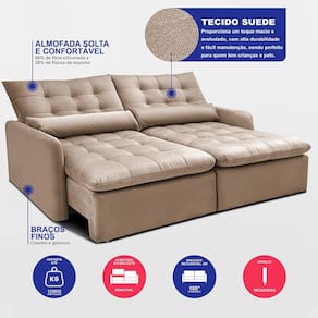 Transforme sua sala em um verdadeiro oásis de conforto e elegância com o Sofá Sem Caixa Sem Caixa Retrátil Celeste. Este modelo não só eleva o charme do seu ambiente, como também proporciona uma experiência de descanso incomparável por conta de sua tecnologia de Espuma SoftGel D40 com ThermoGel. Sendo um modelo 2 em 1, ele pode virar uma excelente cama de casal e ainda pode se transformar m um belo sofá.