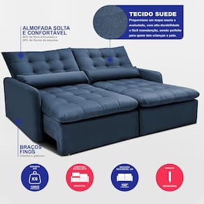 Transforme sua sala em um verdadeiro oásis de conforto e elegância com o Sofá Sem Caixa Sem Caixa Retrátil Celeste. Este modelo não só eleva o charme do seu ambiente, como também proporciona uma experiência de descanso incomparável por conta de sua tecnologia de Espuma SoftGel D40 com ThermoGel. Sendo um modelo 2 em 1, ele pode virar uma excelente cama de casal e ainda pode se transformar m um belo sofá.