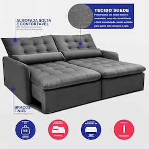 Transforme sua sala em um verdadeiro oásis de conforto e elegância com o Sofá Sem Caixa Sem Caixa Retrátil Celeste. Este modelo não só eleva o charme do seu ambiente, como também proporciona uma experiência de descanso incomparável por conta de sua tecnologia de Espuma SoftGel D40 com ThermoGel. Sendo um modelo 2 em 1, ele pode virar uma excelente cama de casal e ainda pode se transformar m um belo sofá.