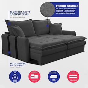 Sofá Sem Caixa Retrátil 2,00m Soft Bonnie Boucle Cama Inbox Cinza Escuro