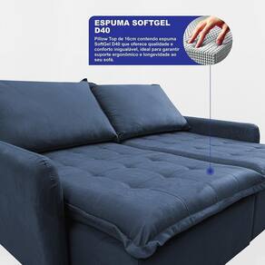 Sofá Sem Caixa Retrátil 2,00m Softgel Luna Velusoft Azul Cama Inbox