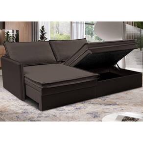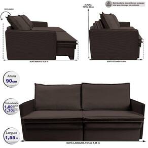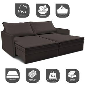 Sofá Sem Caixa Retrátil Baú 1,55m Cama inBox Lounge. Tecido Linho - Marrom