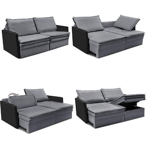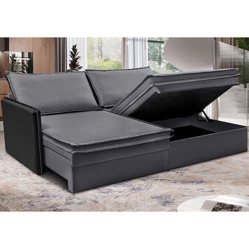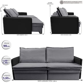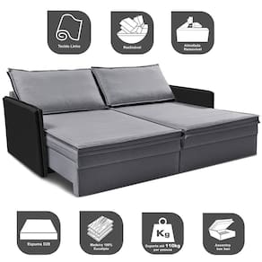 Sofá Sem Caixa Retrátil Baú 1,95m Cama inBox Grace. Tecido Linho e Courino - Grafite