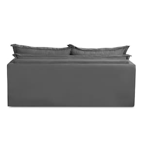 Encosto:Composto por 2 almofadas soltas com enchimento de 80% fibra e 20% flocos que proporcionam maciez e conforto.