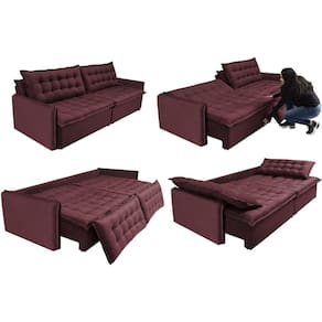 Sofá Sem Caixa Retrátil E Reclinável 1,75m Cama Inbox Versátil Suede Velusoft Vinho