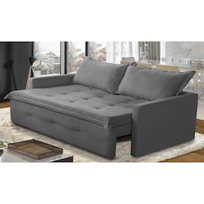 Sofá Sem Caixa Retrátil e Reclinável 1,85m com Molas Bianca Suede Cinza Madelina Decor