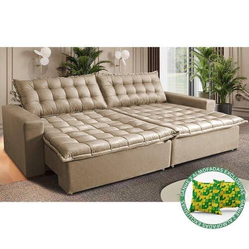 Sofá Sem Caixa Retrátil Reclinável 2,15m Cama Inbox França Velusoft Bege