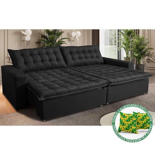 Sofá Sem Caixa Retrátil Reclinável 2,15m Cama Inbox França Velusoft Preto