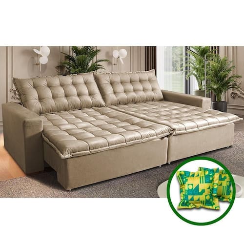 Sofá Sem Caixa Retrátil Reclinável 2,35m Cama Inbox França Velusoft Bege
