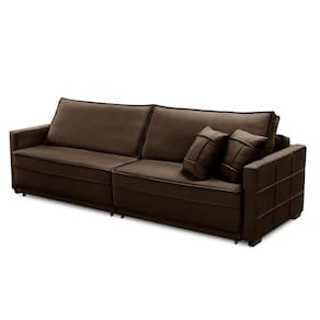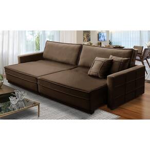 Sofá Sem Caixa Retrátil Reclinável 2,50m Karen Veludo Marrom Adonai Estofados