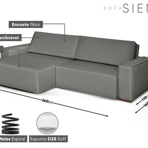 O Sofá Siena proporciona um conforto incomparável, feito com materiais de alta qualidade que garantem durabilidade e versatilidade, tudo isso por um preço acessível. Seu conforto é assegurado pelo tecido nobre e pela maciez da espuma no assento . Além disso, sua estrutura robusta de madeira de eucalipto garante uma longa vida útil. Adquira seu Sofá Siena hoje mesmo e impressione seus visitantes com o máximo de conforto e estilo. Produto Montado: Não Acompanha Almofadas extras: Não Almofada do assento: Fixa Almofada do encosto: Removível Altura do assento até o chão: 43.0000 Altura do Braço: 58 cm Altura do Encosto: 50 cm Altura dos Pés: 2,5 cm Ambiente Principal: Sala de Estar codigo_ean: 7909903899694 Consistência do Assento: Macio Cor: Cinza Cor do Produto: Cinza Densidade do Assento: D-28 Enchimento do Assento: Espuma Firmeza do Assento: Macio Informações Complementares: Não Itens Inclusos: 01 Sofá Largura do Sofá Maior: 260 cm Linha ou Coleção: Não Material dos Pés: Madeira Montagem Flex: Não Necessita Montagem: Não Nível de Conforto: Confortável Origem do Produto: Nacional Peso: 97,5 kg Pet Friendly: Não Possui Percintas Elásticas: Sim Possui Pés: 08 Possui Rodízio: Sim Profundidade Quando Estendido: cm Recomendações de Uso, Manutenção e Limpeza: Não Rodízio com Trava: Não Suporta Até (kg): 120 kg Tecido Predominante: Linho Tipo de Encosto: Regulável Marca: ESTOFADOS GRAFANI