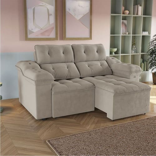 Apresentamos o Sofá Sierra 230cm com Molas Ensacadas Retrátil e Reclinável Kappesberg, combina robustez e conforto. Com estrutura resistente, sistema de rodízios e trilho de madeira, é fácil de manusear. Retrátil e ajustável em seis posições, possui espumas certificadas e revestimento em veludo cinza. Os puxes detalhados garantem um acabamento elegante. Ideal para conforto e beleza no seu espaço.