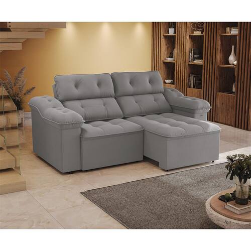 Apresentamos o Sofá Sierra 260cm com Molas Ensacadas Retrátil e Reclinável Kappesberg, combina robustez e conforto. Com estrutura resistente, sistema de rodízios e trilho de madeira, é fácil de manusear. Retrátil e ajustável em seis posições, possui espumas certificadas e revestimento em veludo cinza. Os puxes detalhados garantem um acabamento elegante. Ideal para conforto e beleza no seu espaço.