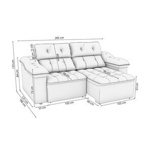 Dimensões do Produto: Altura: 133 cm Largura: 265 cm Profundidade: 121 cm (Fechado) Profundidade: 186 cm (Aberto) Peso: 97 kg