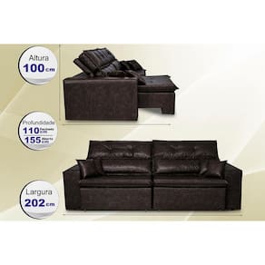 Sofá Tourino 2,02m Retrátil e Reclinável com Molas e Pillow no Assento Courino Café - Cama InBox - Marrom