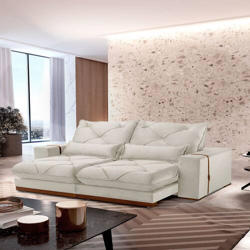 Assento: Retrátil com Percinta elástica, molas ensacadas e molas espirais, espuma D-28, pillow de 25 cm.