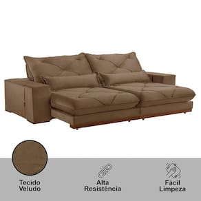 Assento: Retratil com Percinta elastica, molas ensacadas e molas espirais, espuma D-28, pillow de 25 cm.