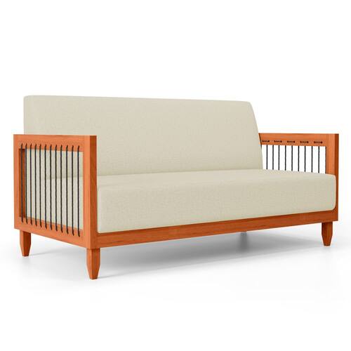 Madeira Maciça, Linho, Espuma HR, Plumante de SiliconeQue tal o Sofá Varanda Samoa Madeira Maciça 02 Lugares com Cordas Náutica?